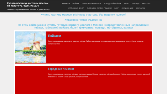 | SEO-описание | Купить картину маслом в Минске: пейзаж, городской пейзаж с видами Минска, жанровую живопись, мотоарт у художника, без наценок галереи |
