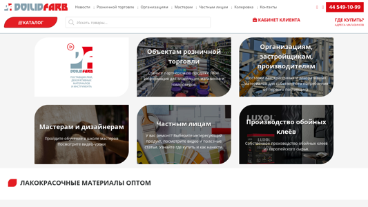 | AI-анализ | --- This website is an online shopping platform for purchasing lacquer and decorative materials in Minsk, Belarus. The store is named DoilydFarb and offers competitive pricing and high-level service. Delivery is available through the company's own transportation. Customers can contact the store via phone or place orders on the website. The site includes a catalog of various products, such as decorative and Venetian plaster, paints, emulsions, primers, and various tools. Categories include materials for walls, floors, doors, and metal and wooden surfaces, as well as roofing and eco-friendly materials. The store also offers educational resources for those performing DIY repairs and renovations. DoilydFarb also produces adhesive tapes for wallpapers. |