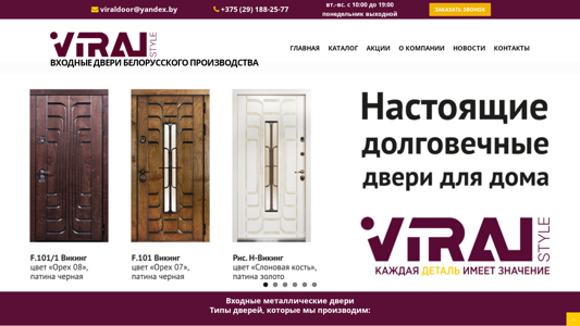 | SEO-описание | Купить входную дверь в Минске от Viral style, широкий ассортимент, цены и фото. Рассрочка. ☎ + 375 (29) 188 25 77 |
