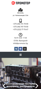 | AI-анализ | The website is a mechanic workshop specializing in the repair and restoration of cylinder blocks and engine details in Mogilev, Belarus. The company, named Promotor, offers low prices for their services. The website provides information about the types of mechanical work they perform, including testing and pressure treatment of cylinder blocks, cylinder block boring, engine block repair and restoration, and shaft and gear works. The website also includes a section about the company, a photo gallery, prices, news, and contact information. The company's equipment is from leading manufacturers such as Rottler (USA), AZ (Italy), and Comec (Italy), allowing for a wide range of mechanical repair and restoration services. The company also has a stock of spare parts and reliable suppliers, ensuring quick delivery of quality replacement parts. The guarantee covers both the completed work and the sold spare parts. |