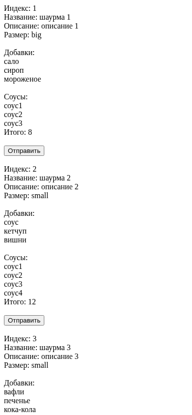 | SEO-лексика | описание индекс название шаурма размер добавки соусы соус1 соус2 соус3 итого small соус4 big сало сироп мороженое соус кетчуп вишни |