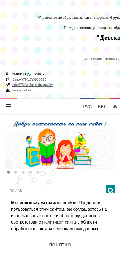 | AI-анализ | This website is for the state educational institution "Detsky Sad No. 475" in Minsk, Belarus. It provides information about the kindergarten's administrative procedures, normative legal acts, and contact details. The kindergarten's operating hours are from Monday to Friday, 7:00-19:00, and it is closed on weekends. The website includes sections on administrative procedures, normative legal acts, and information on how to apply for situational assistance for disabled individuals. There are also sections on the kindergarten's history, team, and various events such as exhibitions and workshops. The website also includes a section on safety rules and policies for handling personal data. The kindergarten offers vocational training and various extracurricular activities, as well as a daycare service. The website includes a section on job vacancies and a union organization for employees |