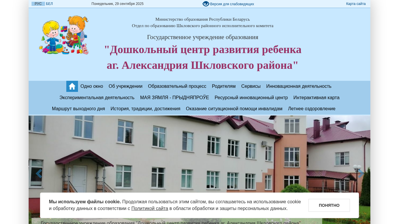 | AI-анализ | This online resource belongs to the State Educational Institution "Preschool Center for Child Development Agency Alexandria" in the Shkловsky region of Belarus. The website provides information about the center's administrative procedures, contact details, and normative legal acts related to preschool education. Users can access an electronic application portal, popular requests, a rating assessment portal, and a telephone hotline for inquiries about the institution. The center's mission, leadership team, pedagogical staff, and conditions for admission are also outlined. Additionally, the website features photo-video galleries, a virtual tour, job vacancies, achievements, and information on educational processes and safety measures. The site is available in both Russian and Belarusian languages. |