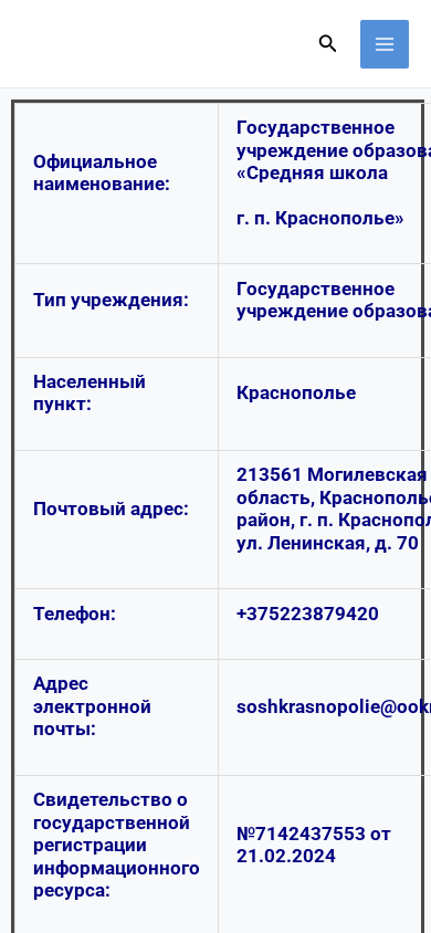 | Название / Заголовок | Государственное учреждение образования Средняя школа г.п. Краснополье |