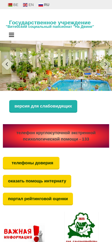 | SEO-описание | Витебский социальный пансионат "На Двине" главная страница комитет по труду, занятости и социальной защите витебского облисполкома |