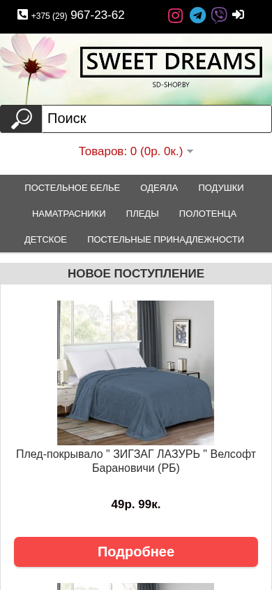 | SEO-описание | Купить постельное белье, одеяла и подушки можно по доступной цене в интернет магазине Sweet Dreams в Минске. Доставка по всей Беларуси. |