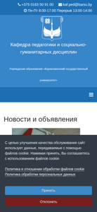 | AI-анализ | The web project "ped.barsu.by" is the official website of the Pedagogy and Social-Humanitarian Disciplines Department at the Baranovich State University. The site provides information about the department, its faculty, disciplines, research, and news. Visitors can find details about the university's educational offerings, faculty contact information, and ongoing research projects. The site also features a catalog of academic disciplines, information on faculty-led research initiatives, and news and announcements. The department is part of the Baranovich State University, located in Baranovich, Brest Oblast, Belarus. The site's content is primarily in Russian, and users can contact the department at kaf.ped@barsu.by or by calling +375 0163 50 91 00 during office hours. |