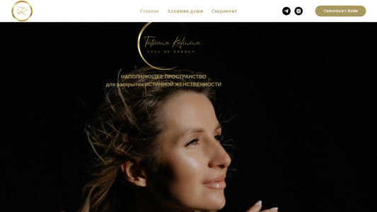 | AI-анализ | --- This online resource, titled "ТАТЬЯНА КАЛИНИНА" (Kalinina.by), is a website dedicated to women's personal growth and spiritual development. The description mentions "Наполняющее женское пространство" (Filling women's space) and "Проводник в мир тонких энергий" (Guide to the world of subtle energies). The author, Татьяна Калинина (Tatiana Kalinina), offers various programs and sacred meetings for deep transformations. The website also includes an authoress's deck of metaphorical cards named "Алхимия Души" (Alchemy of the Soul) and a training course on unlocking energies. Users can contact the author for inquiries and sign up for an autumn energy stream. The website is registered to |
