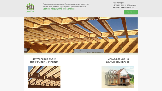 | AI-анализ | --- The website Joist.by is an e-commerce platform selling wood joists in Minsk, Belarus. It offers customers assistance in selecting and purchasing two-beam wooden joists at competitive prices. The site provides a delivery service and features detailed information on various types of joists, including their dimensions and uses in floor, roof, and wall structures. The company also sells carcasses for wooden houses built using these joists. Deliveries are made across Belarus. The site emphasizes the use of modern, high-quality construction materials for floor, mezzanine, and attic flooring and roofing systems. Customers can contact the company via two phone numbers for assistance with their orders. |