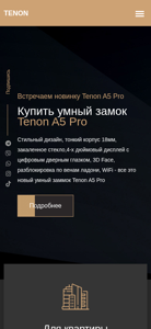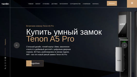 | AI-анализ | This website is an official distributor for smart locks Tenon in Belarus, offering delivery throughout the country. Smart locks Tenon provide reliable security with biometric technology, Wi-Fi, and a digital keyhole. Purchase in Minsk and across Belarus with guarantee, delivery, and support. Choose safety! The site includes a catalog, information on installation, delivery, photo gallery, partnerships, vacancies, company information, certificates, news and promotions, and a service section with a guarantee. Contact information is provided for inquiries. The new product, Tenon A5 Pro, features a stylish design, thin 18mm body, tempered glass, a 4-inch display with a digital door keypad, 3D face recognition, vein recognition palm unlock, and WiFi connectivity. Visitors can learn more and sign up for updates on the new Tenon A |