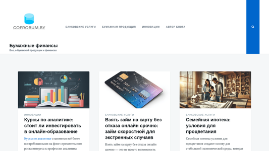 | AI-анализ | The portal Gofrobum.by is dedicated to all things related to paper products and finance. It covers various topics such as banking services, paper production, and innovations. The author of the blog, Ярослав Авдяков, frequently writes about these subjects, including quick online loans, family mortgages, intellectual paper products, and fintech developments in the paper industry. The website also provides information on eco-friendly paper production. |