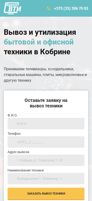 | Название / Заголовок | БРЕСТ-ВТИ - Вывоз и утилизация бытовой техники в г. Кобрине |