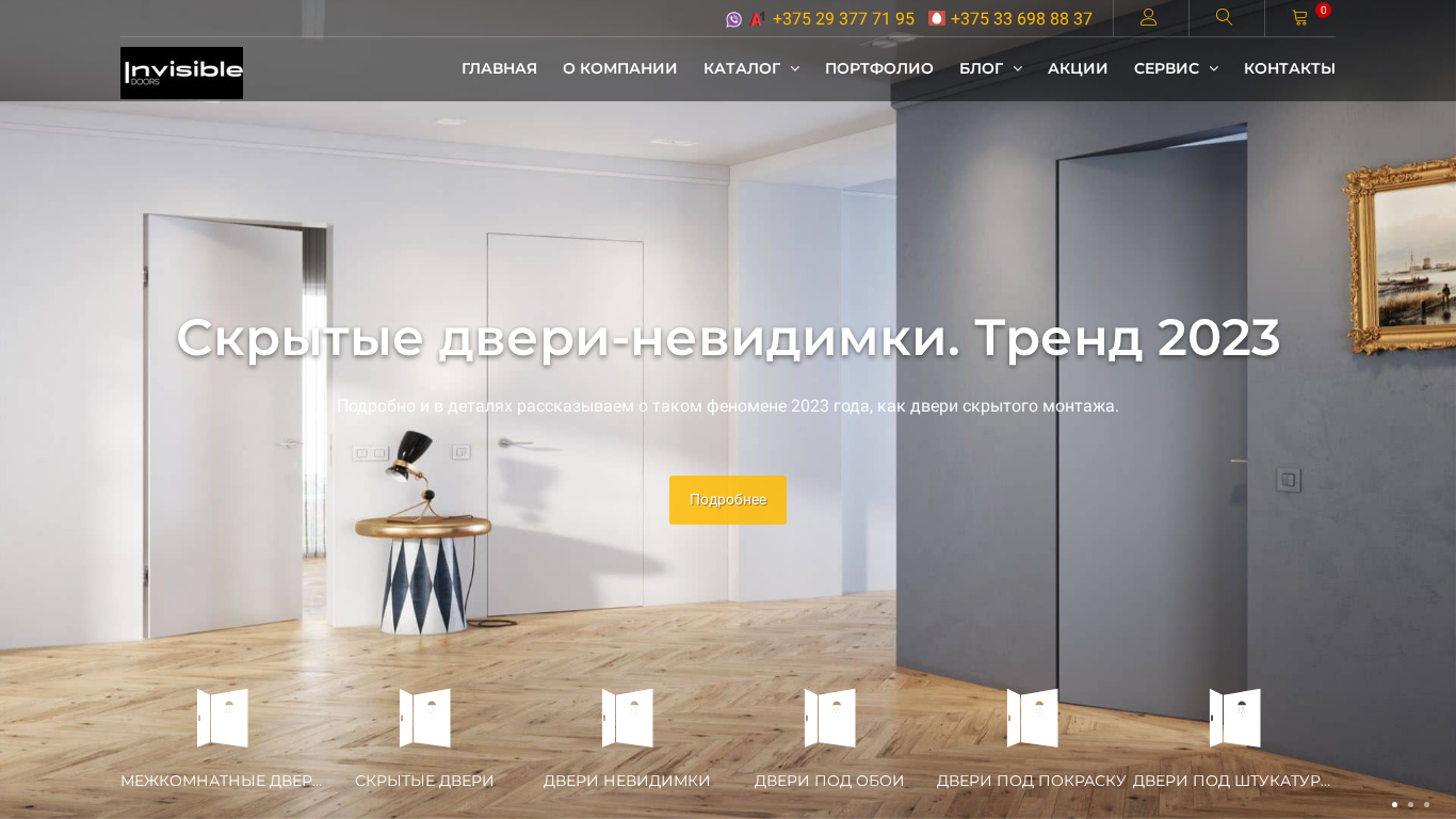 | SEO-описание | Купить скрытые двери-невидимки⚜️ Центр Скрытых Дверей⚜️ с доставкой и установкой в Минске. Качественные двери скрытого монтажа в наличии. ☎️+375293777195 |