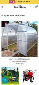 | SEO-описание | ⏩ В продаже с доставкой по Беларуси теплицы из поликарбоната, мотоблоки, бензиновые культиваторы, дачные беседки, мотокосы, бензопилы, сварочные аппараты, бетономешалки и многое другое. |