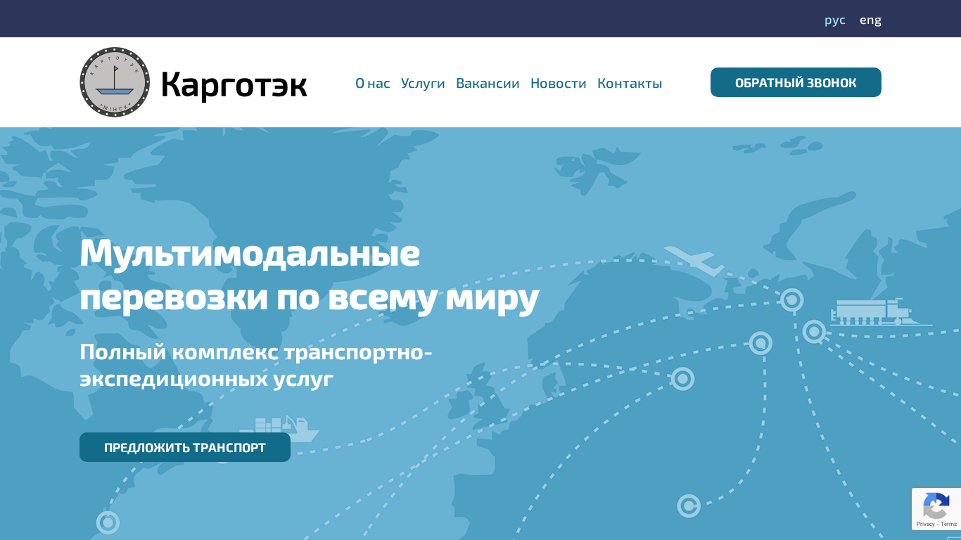 | AI-анализ | --- This online resource, titled "Карготэк" (CargoExpert in English), is a comprehensive transportation and logistics company offering full-service solutions in various modes of freight transportation worldwide. The website is available in both Russian and English languages. The company's main services include containerized, over-sized cargo, auto transportation, warehouse storage, project cargo, liquid cargo, air freight, rail freight, and multimodal terminal operations. Additionally, they provide customs brokerage, financial solutions, and insurance for shipped goods. The company has been certified with ISO 9001:2015 for quality management. The website also features news and information about their participation in various industry events and awards, such as the 'TransRussia' and 'Logitrans' exhibitions, where they showcased their services and interacted with potential clients and partners. The website includes sections for |