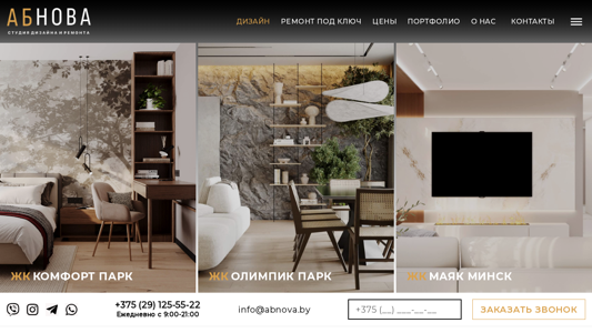 | AI-анализ | The portal Abnova.by is a design and premium class renovation service offering individualized approaches for each client during the project planning stage. Specializing in interior design of any complexity and renovation under key, the website showcases over 260 design projects and 150 completed renovations. The team of designers boasts a diverse range of experience in designing various types of objects and is not shy from taking on ambitious design solutions. Abnova.by has been creating unique and stylish spaces for over 10 years, with a focus on precise project realization. The site offers services for various residential parks including Olympik Park, Mayak, and Komfort Park in Minsk. Contact information for the studio is provided, including a phone number and email address. |