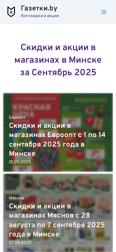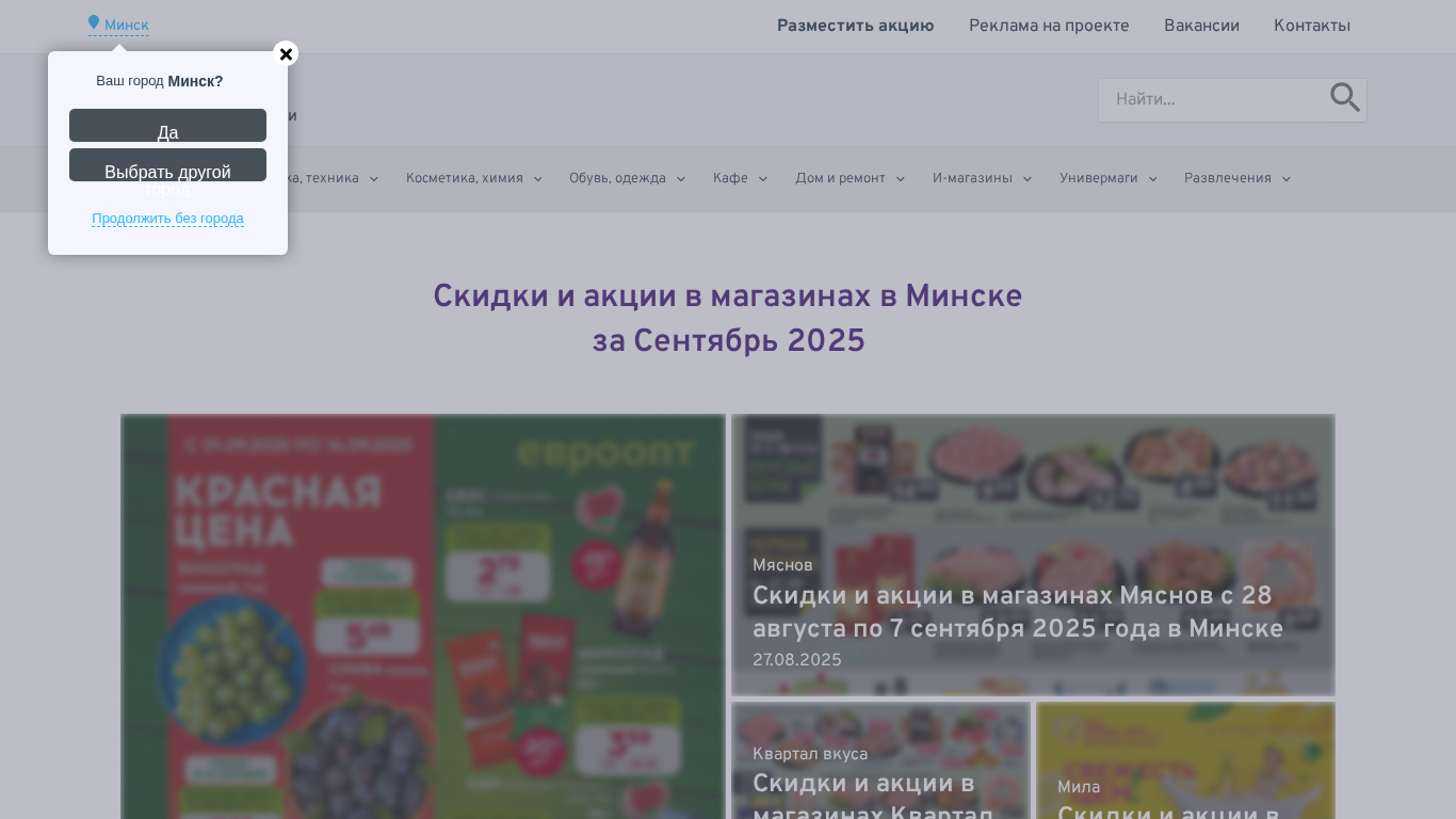| Название / Заголовок | Скидки и акции в магазинах в Минске за Сентябрь 2025 |
