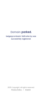 | AI-анализ | The portal belgazprombank-3a19.refer.by is a parked domain that has been successfully registered. It currently displays a simple message stating "2025 Copyright. All rights reserved. Privacy Policy | Imprint." This indicates that the domain is not actively being used for a website or online service, but rather is being held for future use. The domain name belgazprombank-3a19 is associated with the term "belgazprombank," suggesting a potential connection to the Belarusian gas and oil industry or financial services. The top words on the page include "belgazprombank-3a19," "refer," "domain," "parked," "was," "successfully," "registered," "2025," "copyright," "all," "rights," "reserved," "privacy," "policy," and "imprint." |
