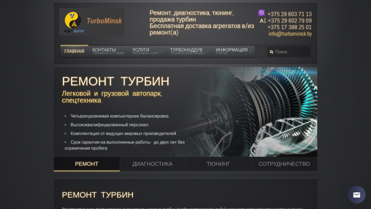 | Название / Заголовок | Ремонт и диагностика турбин в Минск |