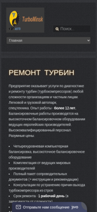 | AI-анализ | --- This online resource provides repair and diagnostics services for passenger and commercial turbocompressors in Minsk. The repair process takes one day, and the warranty lasts from one to two years. Keywords associated with this website include 'turbines', 'repair', 'diagnostics', 'tuning', and 'turbocompressors'. The website also offers delivery of replacement parts for free. The services offered include repair of turbines, balancing equipment, diagnostics of turbines, repair of vehicles, turbocharging, and evaluation of turbocompressor technical condition. The website contains information on the fundamentals of turbocharging, types of turbines, causes of oil consumption, and common turbine failures. Recommended work for vehicles includes turbocharging and diagnostics of turbocharging systems. Technologies include those from IHI series VF. The website features articles, customer reviews |