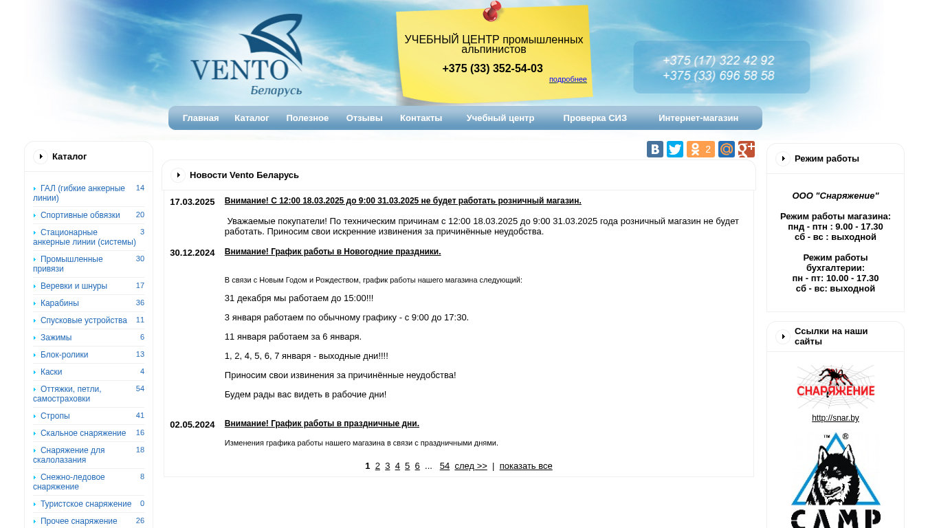 | Название / Заголовок | Альпинистское, туристическое и спелеологическое снаряжение Vento | Ventobel.by |