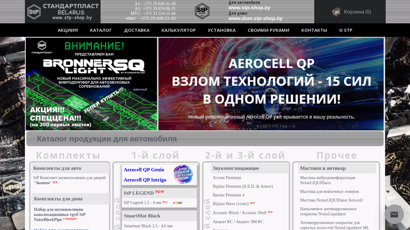 | SEO-описание | Купить StP от официального представителя в РБ. Материал для шумоизоляции, виброизоляции и звукоизоляции машины от Стандартпласт. |