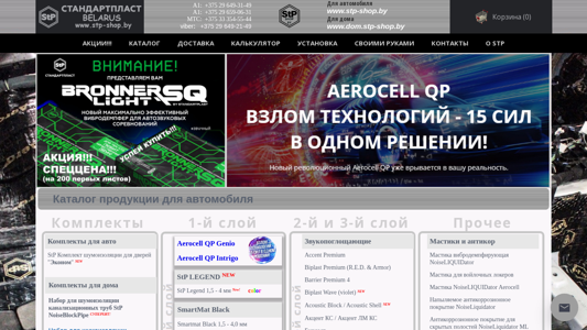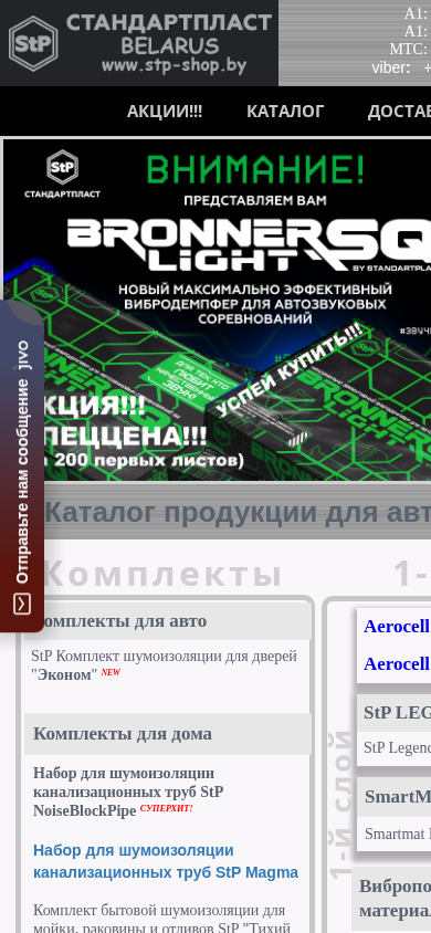 | AI-анализ | This website is an e-commerce platform selling sound and vibration isolation materials from Standardplast under the brand StP. The site offers StP products for both automobile and home use. Customers can purchase various types of StP materials, including Aero New, F200, Bimast Bomb Premium, and Massa Bassa. The site also features soundproofing panels, such as NoiseBlock, and decors like CrystalSound. There are various product categories, including Aero, Profi, Beat-on, and Quattara series. The site provides contact information for three phone numbers and a Viber number, as well as links to separate websites for automobile and home products. The site has a shopping cart feature and mentions a catalog of products for both automobile and home use. The top words for this website include 'stp', 'new', 'шумоизоляции |