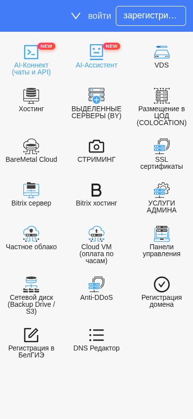 | AI-анализ | The website 'Cloud.support.by' is a hosting and cloud services provider, with a focus on Bitrix solutions. The title of the website is 'Cloud', and the description is blank. The most frequent keywords on the website are 'cloud', 'new', 'хостинг' (hosting), 'bitrix', 'регистрация' (registration), and 'AI-Коннект' (AI-Connect). The website offers various services, including AI-Assistant, VDS hosting, dedicated servers, BareMetal Cloud, streaming, SSL certificates, Bitrix server, Bitrix hosting, admin services, private cloud, Cloud VM (hourly payment), control panels, network disk (Backup Drive / S3), Anti-DDoS, domain registration, registration in BelGIE, DNS editor, and multi-cloud. The website requires JavaScript to be enabled for proper functioning. |