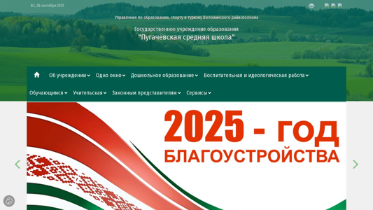 | AI-анализ | type: education The web project "Пугачёвская средняя школа" (Pugachi Secondary School) is a Belarusian educational institution with the domain name <pugachi.volozhin-edu.gov.by>. The title of the website translates to "Pugach Secondary School" in English. The description of the website contains keywords related to the school and its location, including "Пугачёвская" (Pugach), "средняя" (secondary), "школа" (school), "ВС" (Volozhin region), "28 сентября 2025" (September 28, 2025), and "Беларуская" (Belarusian). The website also uses keywords related to education such as "образования" (education) and "электронное |