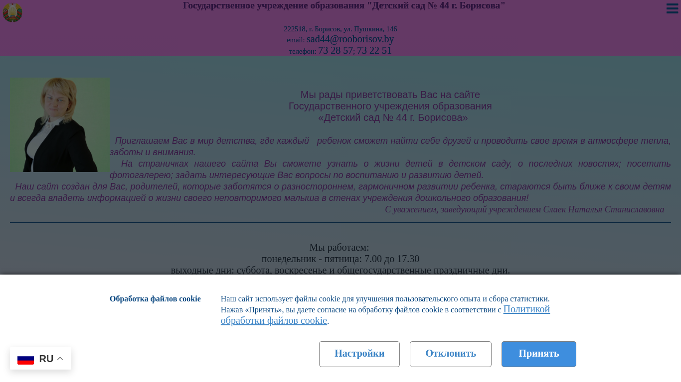 | Название / Заголовок | ГУО "Детский сад № 44 г. Борисова" - Официальный сайт |