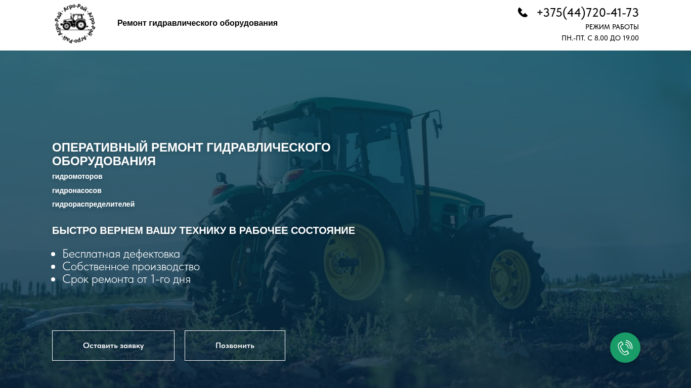 | AI-анализ | --- This website is a repair service for hydraulic equipment with the title "Ремонт гидравлики" and keywords related to hydraulic repair, such as "ремонт", "замена", and "гидравлики". The website offers services for the repair of hydromotors, hydronosovs, and hydraulic distributors. The contact number is "+375(44)720-41-73" and the operating hours are Monday to Friday from 8:00 to 19:00. The website provides a quick repair of hydraulic equipment and offers services such as defect inspection, self-manufacturing, and a repair time of one day. Clients can leave a request for repair or call the provided number. The services include the repair of hydromotors, hydronosov |