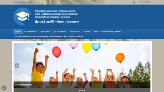| AI-анализ | The website is a government educational institution, specifically a kindergarten named 'Detsky sad #5 "Mayak"' located in Osiповичи, Belarus. The site provides information about the kindergarten, including its location, contacts, leadership, and functions. Keywords associated with the site include 'school', 'education', 'news', and 'September 2025'. The site is operated under the Ministry of Education of the Republic of Belarus and follows regulatory guidelines. The kindergarten offers various services, such as childcare, social-pedagogical support, and health and safety measures. The site also features a section for parent consultations and information on administrative procedures. The domain is sad5.osipovichiedu.gov.by. |