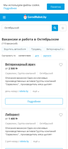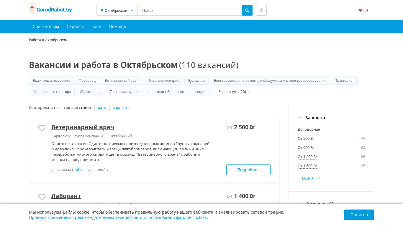 | SEO-описание | Ищете работу в Октябрьском (Гомельская область)? На нашем сайте Вы найдете более 110 свежих вакансий от прямых работодателей. Быстрый и удобный поиск вакансий с ГородРабот.бай |
