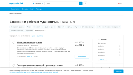 | SEO-описание | Ищете работу в Ждановичи (Минская область)? На нашем сайте Вы найдете более 91 свежей вакансии от прямых работодателей. Быстрый и удобный поиск вакансий с ГородРабот.бай |