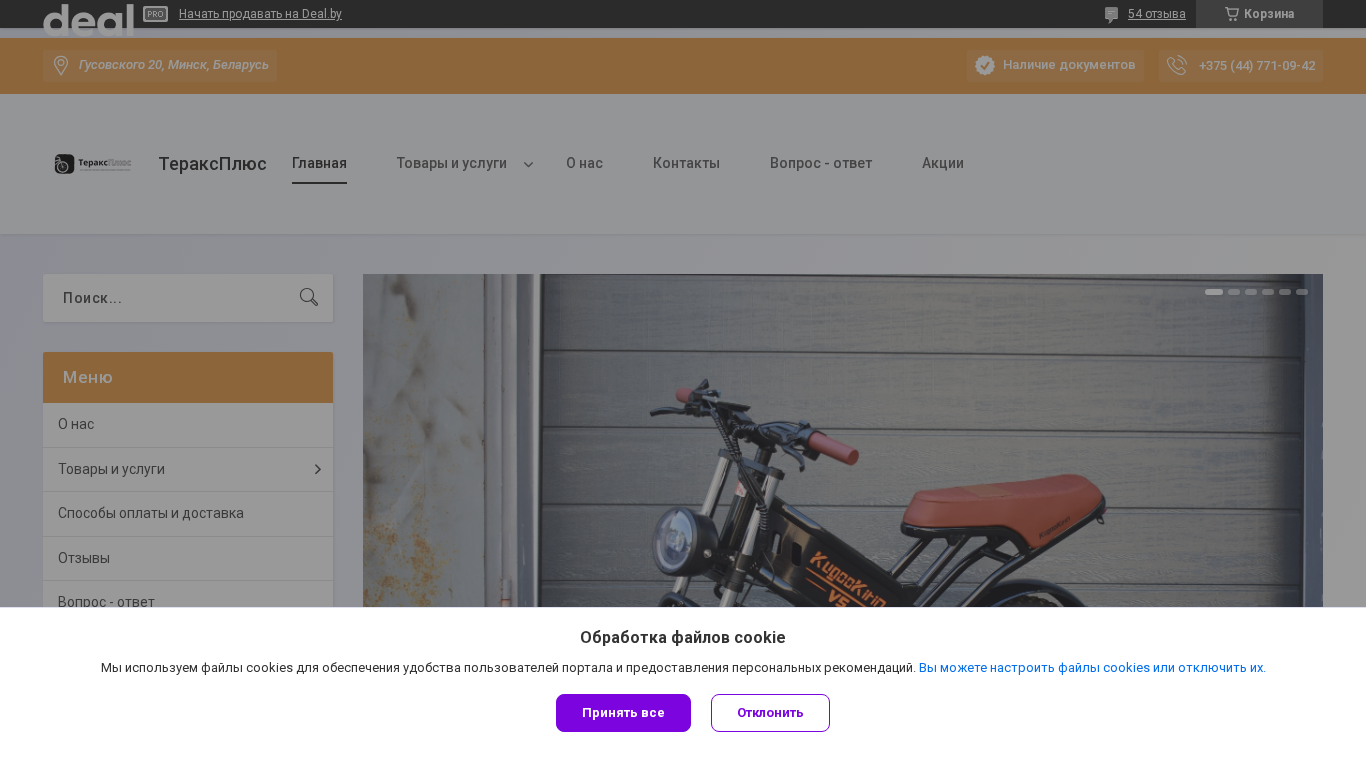 AI-анализ | The portal Teraxplus.deal.by is an e-commerce site for the company "Общество с ограниченной ответственностью "Тераксплюс,"" offering contacts, products, and services with prices. The site sells various items, including electric transportation like bicycles and quadricycles, heating appliances such as heaters and massage chairs, and kitchen appliances like microwave ovens. The company also provides information on their products, contacts, and FAQ section. The site operates under the .BY domain and is located in Belarus. The company's contact information includes a phone number, and some products are available for both wholesale and retail purchase. The site offers a shopping cart and customer reviews, and the company provides a credit or installment plan for purchases through various Belarusian banks. The site features a selection of electric bicycles |