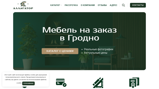 | SEO-описание | Корпусная мебель на заказ в Гродно. ⭐Рассрочка 0%. ✔️Реальные фото и цены! ✔️Изготовление мебели по индивидуальному заказу в Гродно на мебельной фабрике Аллигатор. |