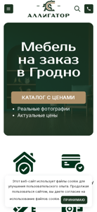 | AI-анализ | --- This online resource is a custom furniture manufacturer based in Grodno, Belarus, named Mebel-Grodno by Alligator. The website offers a range of furniture for sale, all made to order. Customers can view real photos and prices of the products. The website features a catalog with categories for various rooms, including kitchens, children's rooms, living rooms, bedrooms, offices, and more. The company provides a seven-year warranty and offers a discount on purchases with a consultation from a designer. The site also mentions a no-interest financing option and the availability of a designer visit for an additional fee. The homepage includes links to popular items, such as kitchens starting at 2000 rub, beds starting at 550 rub, and wardrobes starting at 1300 rub. The site also provides information on recently completed projects in Grodno and offers |
