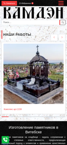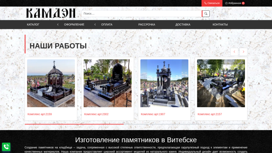 | AI-анализ | The web project Kamden.by offers a catalog of monuments for sale in Vitsebsk with discounted prices. The site provides a large selection of granite items including single, double, and complex monuments: crosses, sarcophagi, arches, and more. Prices and photos are presented on the site. |