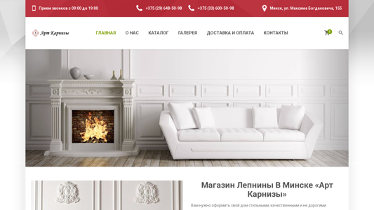 | SEO-описание | Арт Карнизы - интернет-магазин изделий из лепнины в Минске: плинтусы, молдинги, багеты, фасадная лепнина, колоны пилястры, консоли. ☎ Звоните +375 (29) 648-50-98. |
