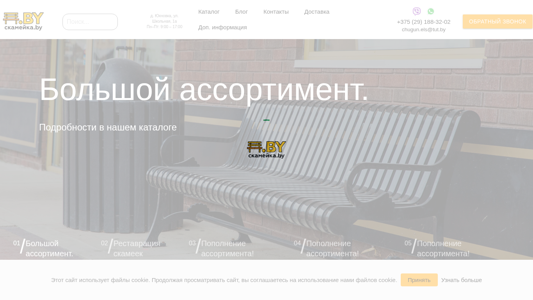 | AI-анализ | --- This website is an online shopping platform selling park benches for the street with delivery in Minsk, Belarus. The title of the website is "Скамейки купить в Минске: парковые скамейки для улицы с доставкой" which translates to "Buy street benches in Minsk: delivery of park benches for the street". The description contains information about purchasing park benches, delivery, and customer support. The keywords include words related to benches and furniture such as "скамейки", "new", "урны", "нашем", "каталоге", "чугунные", "стальные", "бетонные", "пополнение", "ассортимента", "новые", "руб", "перголы", "столбики", "велопарковки", "то |