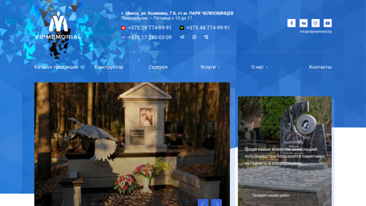 | AI-анализ | --- This online resource is dedicated to offering memorial services in Minsk, Belarus. The website showcases a catalog of granite memorials and monuments, including photos and prices, for customers to purchase and have installed on gravesites. VipMemorial, located at Ul. Kalinina, 7 B, Park Cheluskinets, provides a range of memorial services and products, including vertical and horizontal monuments with arches, exclusive family memorials, and columbariums. The company offers granite ogras, combinable and covened ones, as well as accessories such as polymeric vases, granite vases, sculptures, lamppades, metal frames, and triplex. Clients can also find information about the company's history, services, and contact details on the website. |