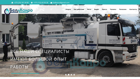 | AI-анализ | The website is for Belarusian company Bel-Kanro that provides comprehensive cleaning services for various types of sewage systems in cities such as Minsk, Brest, Vitsebsk, Homel, Hrodna, and Mohyliv. Their services include sewage cleaning, ventilation cleaning, emptying septic tanks, grease traps, and settling tanks. The company uses modern technology and experienced personnel. They cater to large, medium, and small enterprises. The website includes sections on their services, how they work, photos, videos, press, technology, contacts, and production. Bel-Kanro offers cleaning services for all types of sewage networks, including the removal of debris from tubes larger than 1500mm in diameter and a depth of over 20 meters. They also offer video diagnosis of sewage pipes, the removal of the consequences |