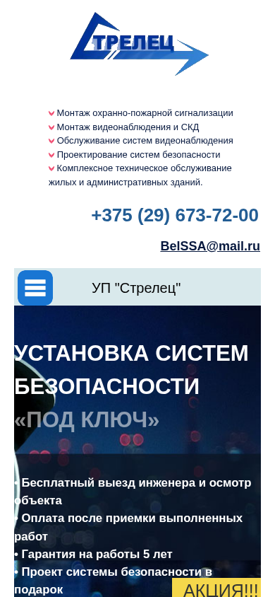 AI-анализ | This online resource, titled "Системы безопасности" (Systems of Security), offers services related to the installation and maintenance of security and safety systems. The key offerings include wireless fire alarm systems, wireless warning systems, wireless security alarm systems, and location and paging services. The website provides information on the company's installation, consultation, and contact details. The description mentions a free engineer visit and quote for a contract lasting three years, as well as a 5-year guarantee on completed work. The company offers services for montaging and maintenance of video surveillance systems, ranging from a single camera to multiple units. Additionally, they provide project design for various safety systems, such as access control, alarm systems, and fire safety systems. The website also mentions the availability of ip-video doorphones and their installation and maintenance. The domain is strelec.by. |