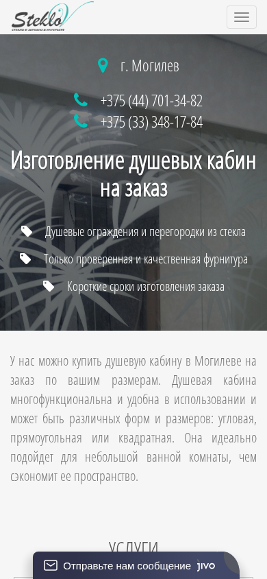 | SEO-описание | Изготавливаем стеклянные душевые кабины на заказ в Могилеве. Производим зеркальные плитки, панно из зеркал, изделия из стекла. Звоните! ☎ +375 (44) 701-34-82. |