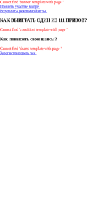 | SEO-лексика | cannot find template with page рекламная игра умножай удачу banner принять участие игре результаты рекламной игры выиграть один 111 призов |