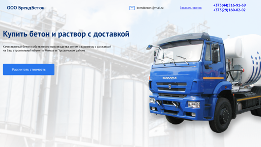 | AI-анализ | --- The web project "БрендБетон" is a website dedicated to the sale of high-quality concrete at affordable prices with 24/7 delivery services. The offerings include the sale of concrete, mixers, and trucks. The site provides information on various concrete marques such as M100, M150, M200, M250, M300, and M400. The contact information includes phone numbers and an email address for inquiries and orders. The site also offers a calculator to determine the cost of the concrete. The company prides itself on its innovative production methods, punctual delivery, and quality control. The site is available in Belarusian language and the domain is [brend-beton.by](http://brend-beton.by). |