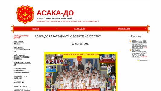 | AI-анализ | The web project "АСАКА-ДО" is a martial arts school founded in 1990 named after its founder, Mikhail Kazachok. The domain is based in Minsk, Republic of Belarus, and offers training in various disciplines including karate-jitsu, kobudo (weapons), self-defense, and street fighting. The school also provides equipment and hosts sporting events such as a strength marathon and a tournament named "В ЯБЛОЧКО!-2025". The website includes a calendar of events, results of past tournaments, and news updates. The school caters to children and adults of all levels of preparation, with a location at "Чижовка-Арена" in Minsk. Prospective students can attend a free trial session by contacting the school using the provided phone |