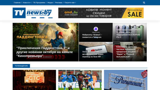 | AI-анализ | --- This online resource, TVnews.by, provides news on television, radio, cinema, and technology communications. It features a TV program for the week, satellite news, mobile communication, and internet. |