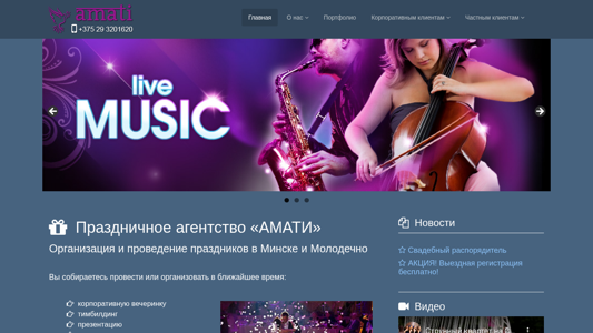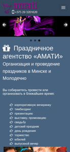 | SEO-описание | Праздничное агентство «АМАТИ» Организация и проведение праздников в Минске и Молодечно Вы собираетесь провести или организовать в ближайшее время: корпоративную вечеринку тимбилдинг презентацию выставку, промоакцию свадьбу детский праздник день рождения торжество юбилей выпускной вечер И чтобы это мероприятие прошло не скучно |
