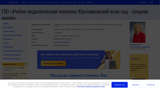 | AI-анализ | --- This online resource is the website of the educational complex "Juratishkovsky kindergarten-school" in Belarus, with the title "ГУО «Учебно-педагогический комплекс Юратишковский ясли-сад - средняя школа»" and domain name yuratishki.schools.by. The site uses cookies for site functionality and data collection. Users can allow or manage cookie settings. The color scheme is gray, and images are turned off in black and white. The keywords associated with this site include "cookie", "2020", "образования", "файлов", "работы", "сайта", "нет", "ноября", "гайжевская", "комментариев", "дня", "подробнее", "тут", "уч |